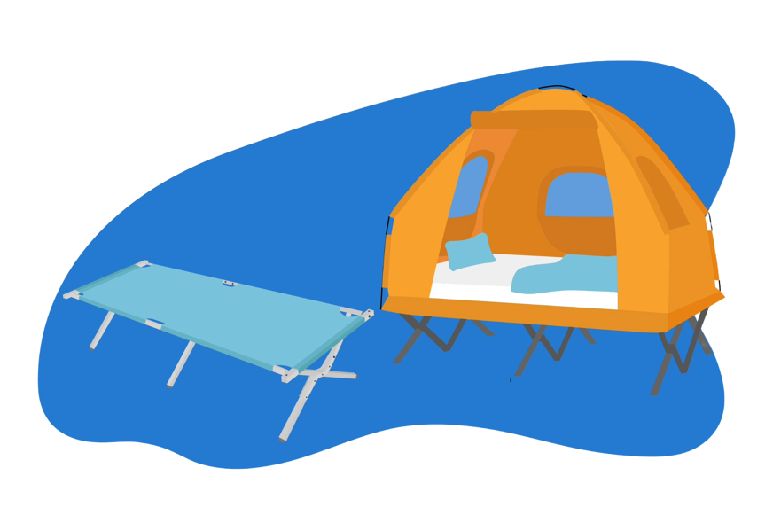 Oubliez les tapis de sol qu’on réservera pour les bivouacs de randonnée et les festivals de l’été. Vous pouvez partir sur matelas gonflables de camping ou un lit de camp.