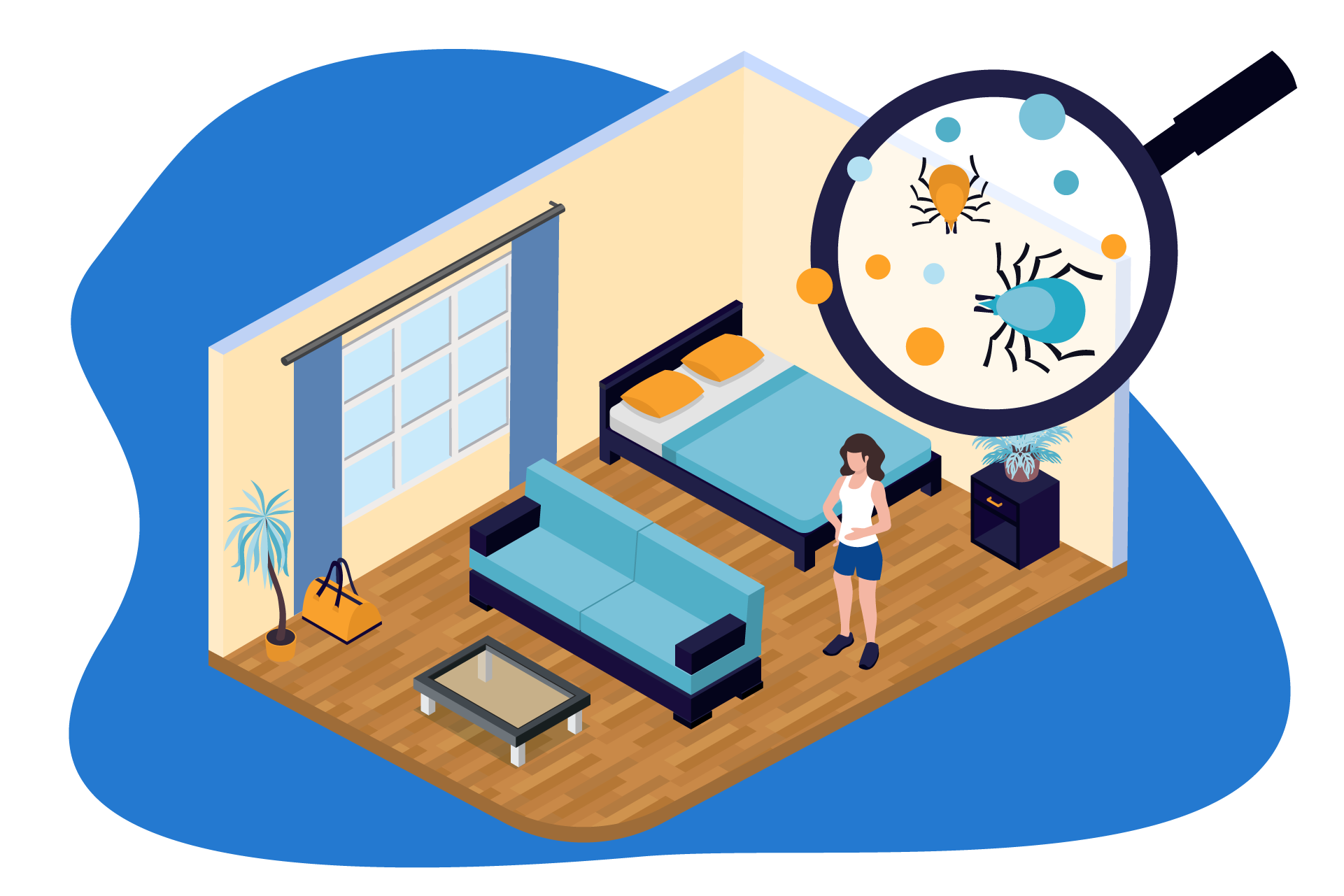 Ces parasites se dissimulent également dans les fentes et les crevasses des cadres de lit, des têtes de lit, et des pieds de lit. Ils peuvent s'installer dans les tiroirs des commodes, les armoires et autres meubles de chambre, mais aussi des canapés.